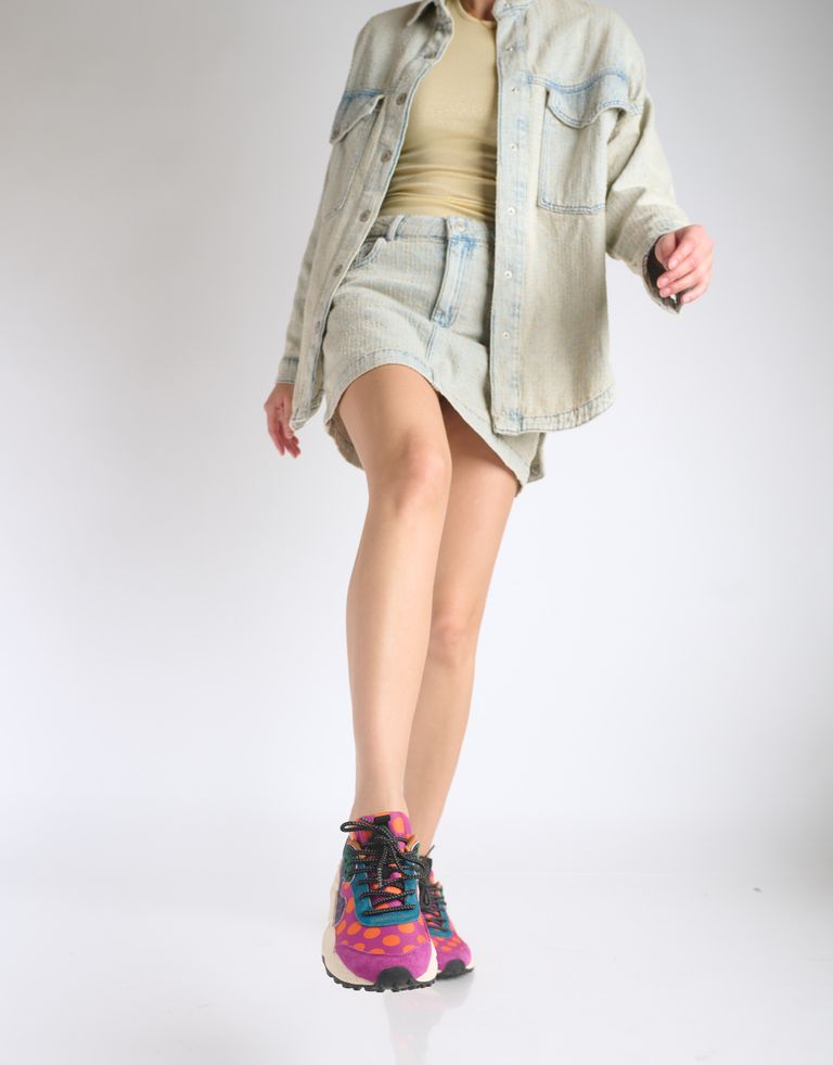 החומרים, הטקסטורות, הצבעים. איזו הרמוניה! סניקרס צבעוניות המותאמות לטיולים ארוכים ולטרקים (בזכות סוליה עם אחיזה חזקה על האדמה ורפידה נוחה ונשלפת).