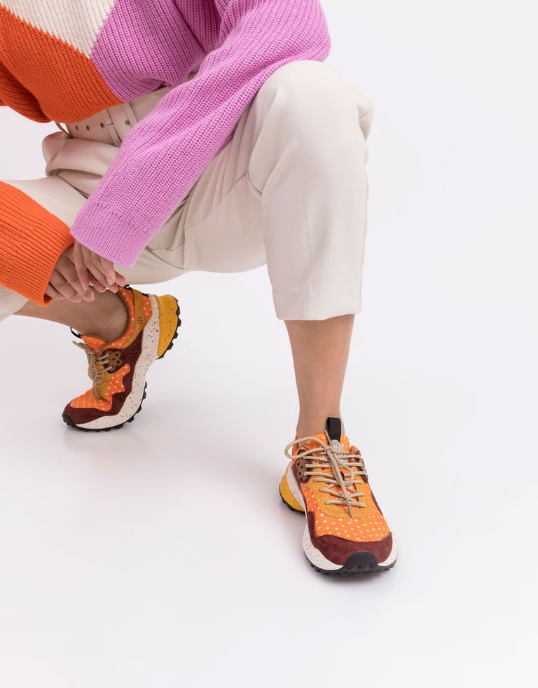 נעלי טרקים KOTETSU לנשים, לא מה שחשבנו: צבעוניות ומנוקדות, כאלו שרואים מרחוק שהן באו כדי לשמח. הסניקרס מתאימות לטיולים ארוכים בזכות סוליה מיוחדת עם אחיזה חזקה על האדמה, סוליות שעם נוחות ונשלפות ושימוש בחומרים אנטי בקטריאליים (אבל שלא תתבלבלי – הן מסתדרות מעולה גם עם מדרכות עירוניות). הסניקרס עשויות מעור בטקסטורה פרוותית.