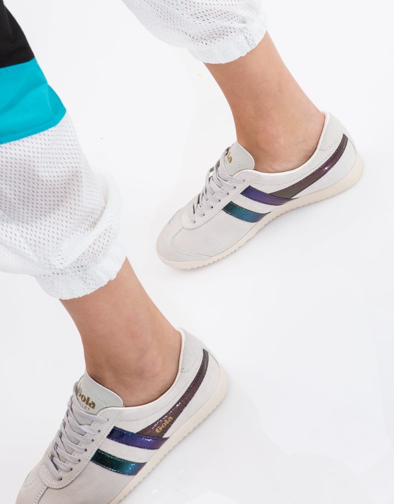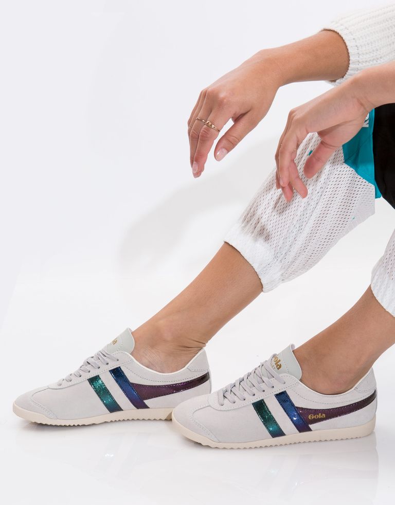 סניקרס זמש עדינות עם פסים מטאליים צבעוניים. יפה לך!