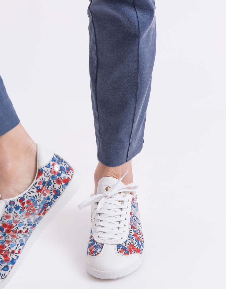הפאטרן הנהדר של הסניקרס האלו הוא תוצר של שיתוף הפעולה המתמשך בין גולה לכלבו הבדים היוקרתי "ליברטי".