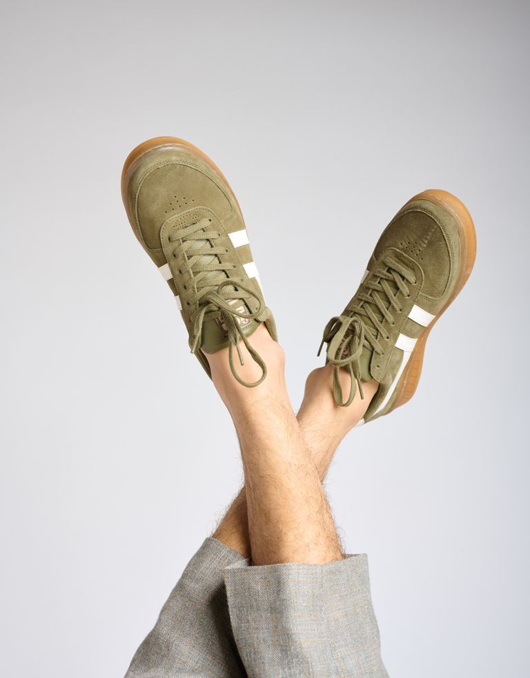 נעלי סניקרס נמוכות מזמש עם סוליה בגובה 3.5 ס"מ, בטנת עור ורפידת בד נשלפת.