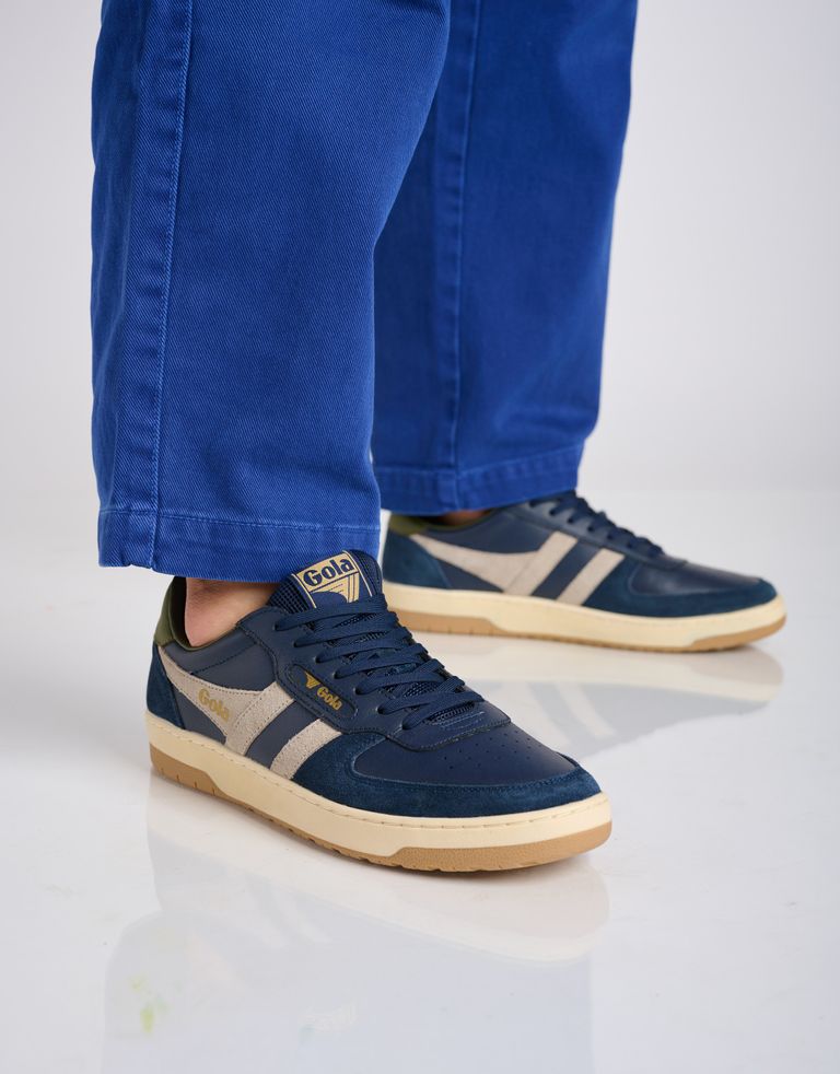 סניקרס מעור בסגנון אולדסקול במלוא מובן המילה. שילוב של עור וזמש, לשונית רשת, חירורים מקדימה ובצדדים – פסי הלוגו של גולה.