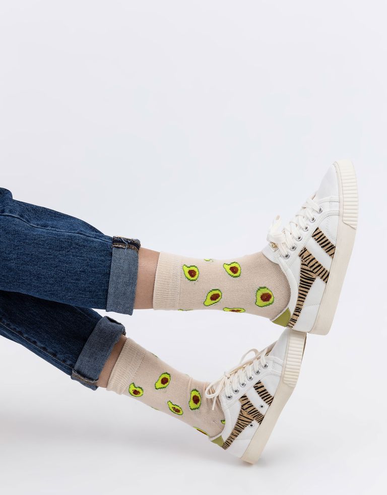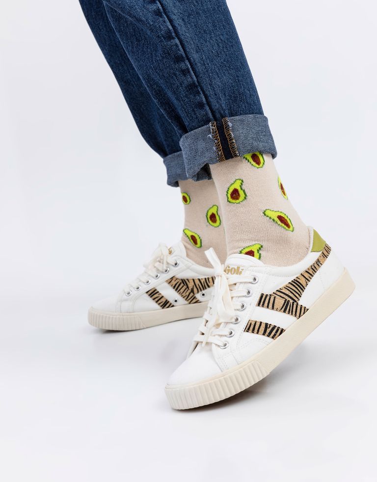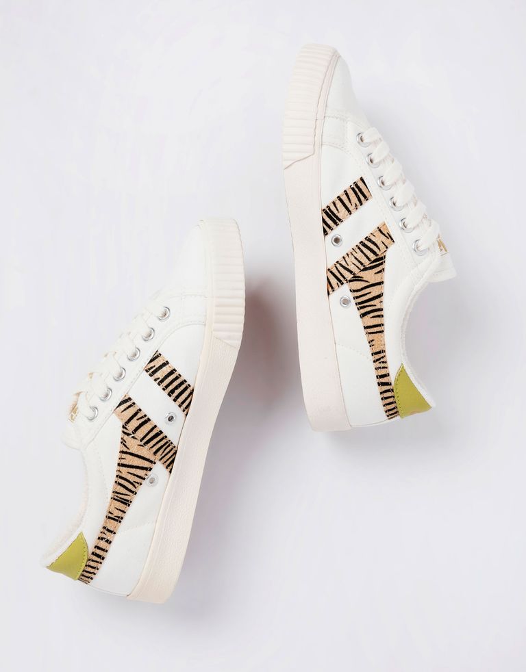 סניקרס טבעוניות לבנות, לנשים עם הדפסי ספארי על הפסים. ככה פשוט ככה גאוני.