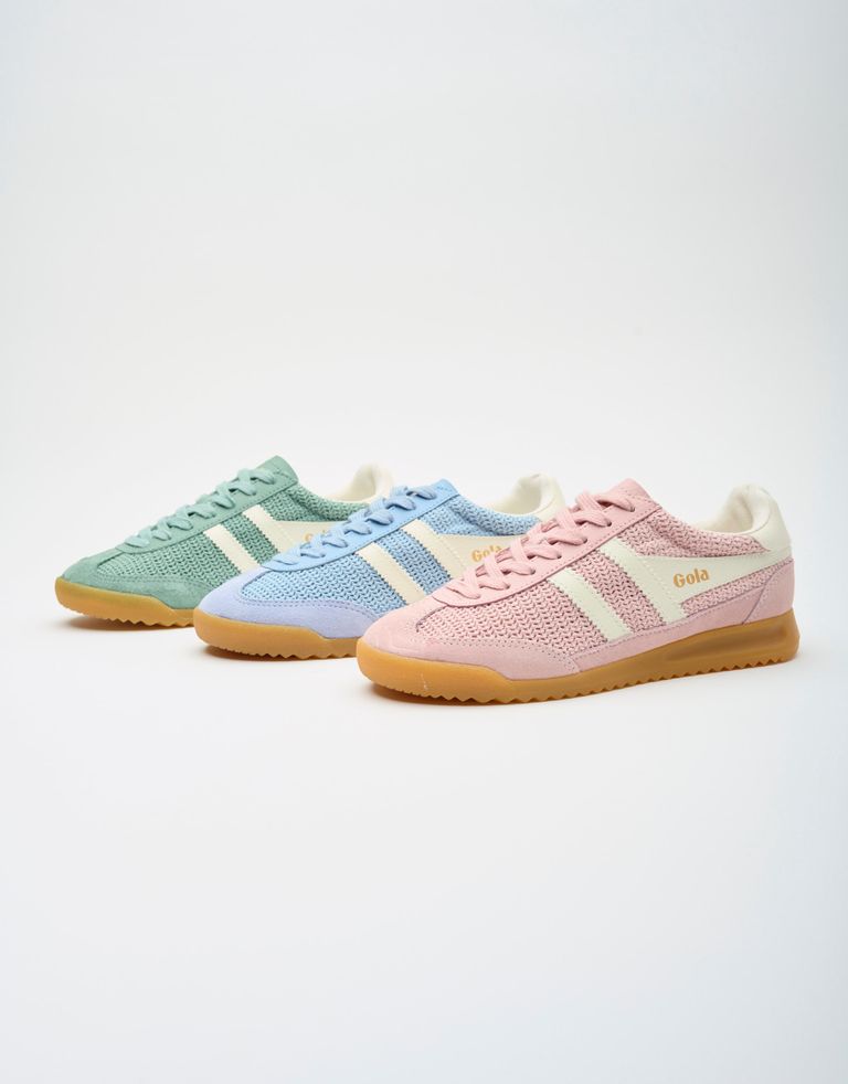 נעלי סניקרס קלאסיות עשויות שילוב של רשת וזמש, בגווני פסטל. אין יותר קיץ מזה.