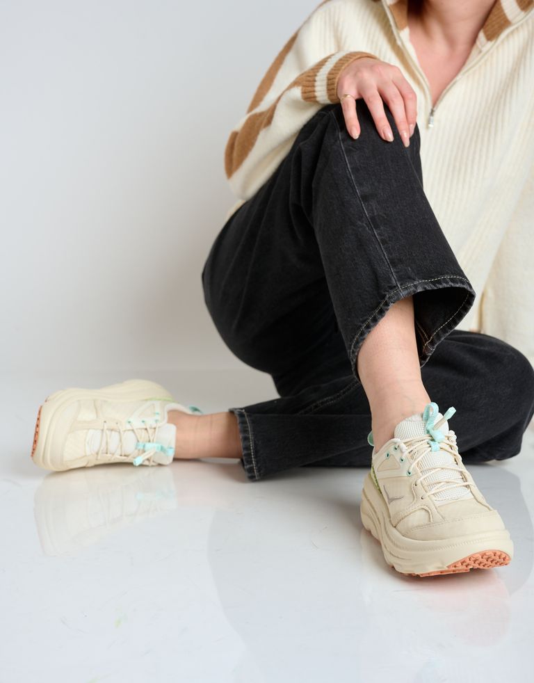 סניקרס במראה צ'אנקי. עשויות בד רשת בשילוב עור נובוק. נעליים מאווררות עם סוליה רכה במיוחד לנוחות בכל צעד.