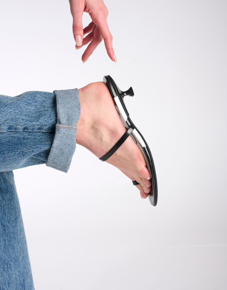 כפכפים עם עקבים עם רצועה מרכזית וטבעת לבוהן. נונשלנטיים וסופר שימושיים.