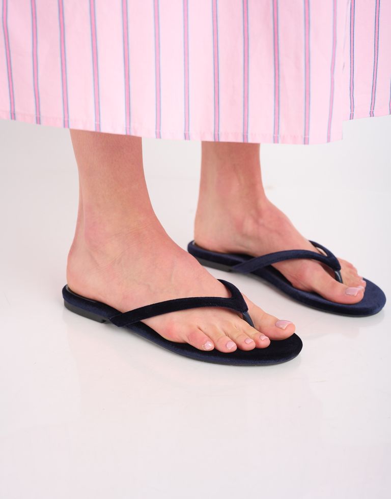 כפכפים שטוחים עם רצועות עדינות וחינניות עשויות קטיפה.