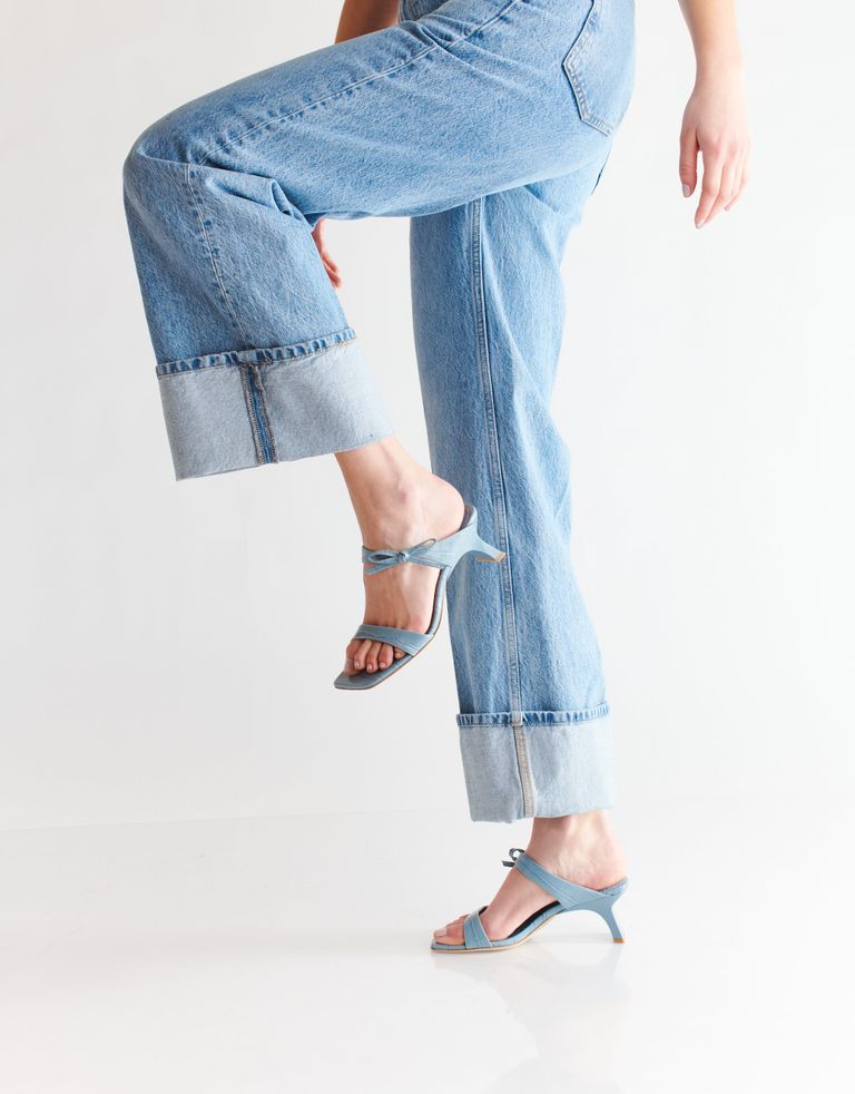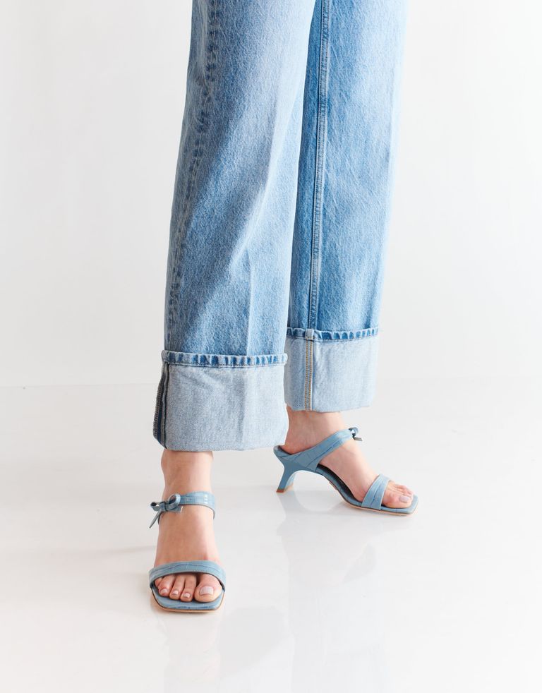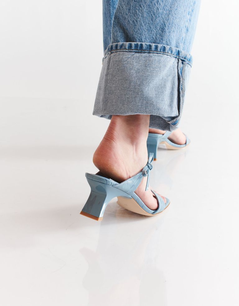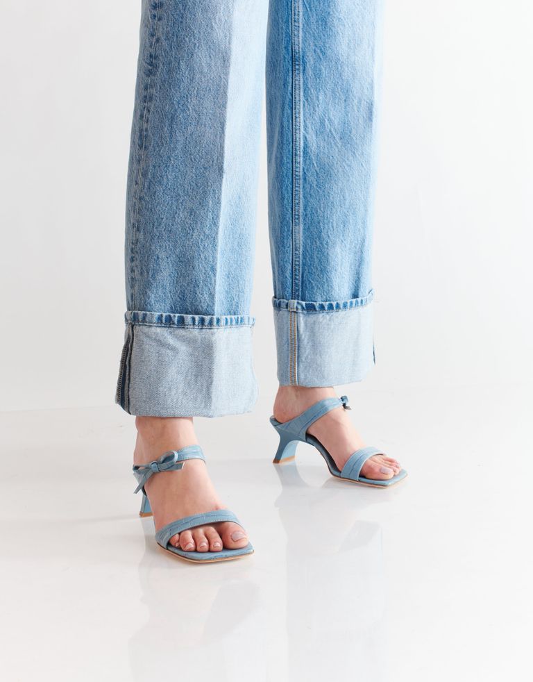 הכפכפים עשויים משתי רצועות וקשר פרפר. הזווית האלכסונית בעקבים מתוחכמת אבל ללא מאמץ, נותנת עוד אופי ואדג'.