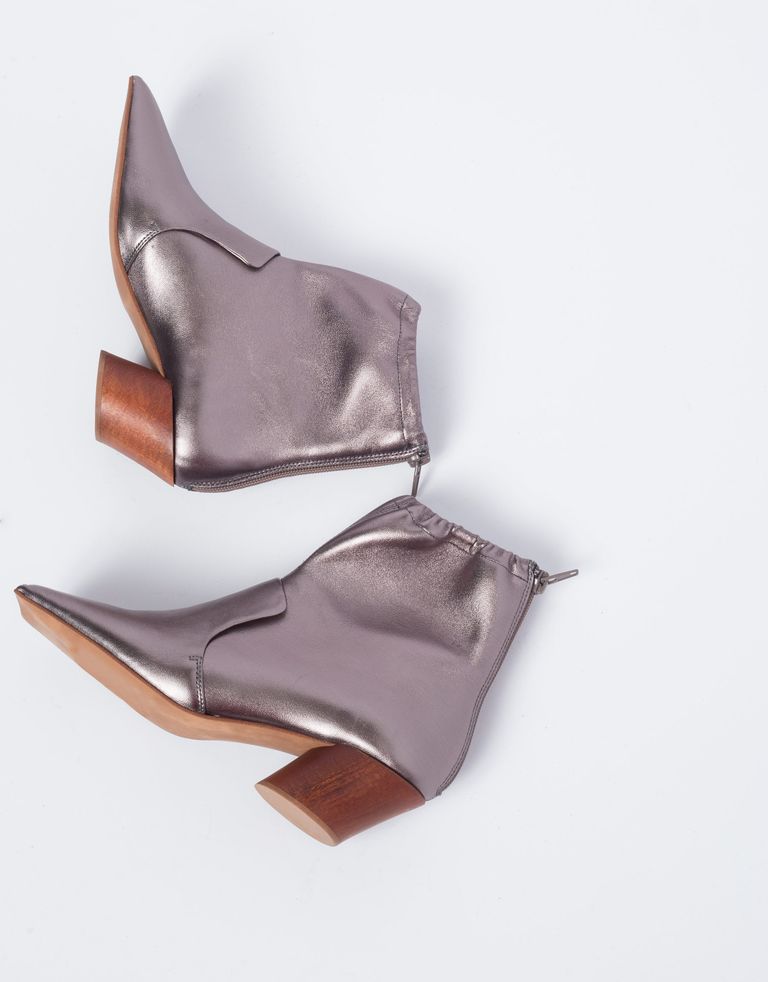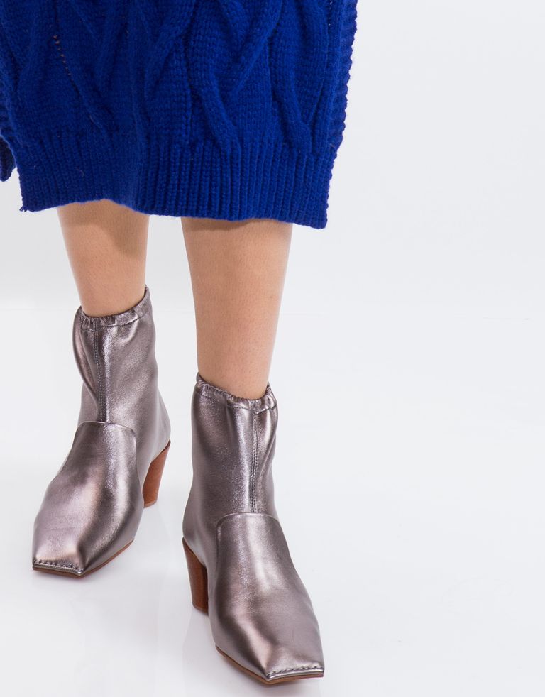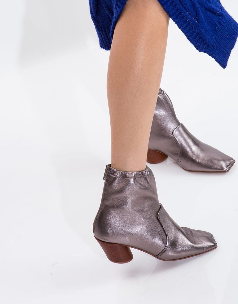 מגפוני עור מקוריים עם חרטום מלבני וכיווצים על הגפה.