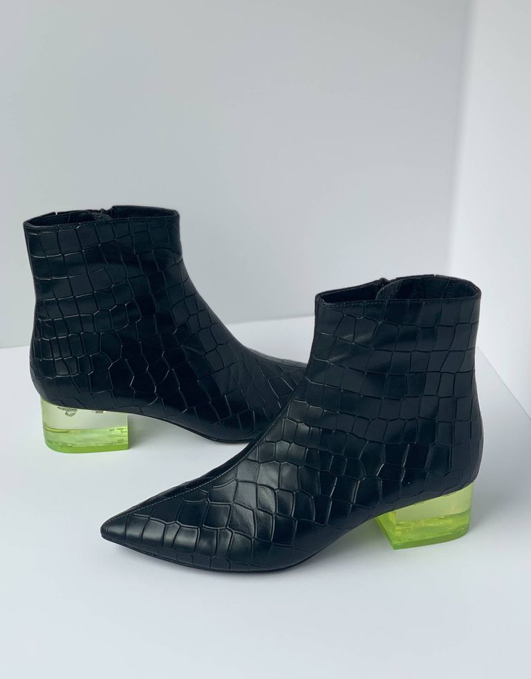 מגפונים מחודדים עם טוויסט בצורת עקבים שקפקפים מחומר סינטטי.