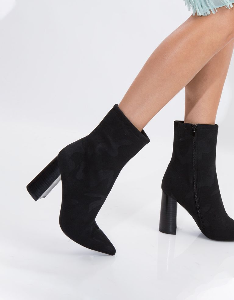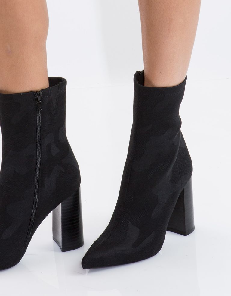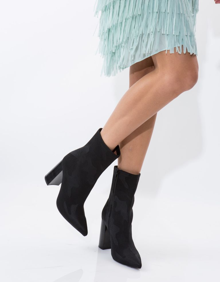 מגפוני בד עם עקב גבוה. לתשומת לבך – השכבה האפורה בדגם רשת עשויה מחומר מחזיר אור ולכן לעתים תיראה לבנה או מטאלית.