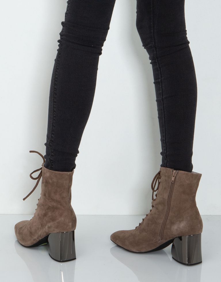 הסוד הוא בעקב: מגפוני זמש עם שרוכים ועקב מטאלי בחיתוך נדיר.
