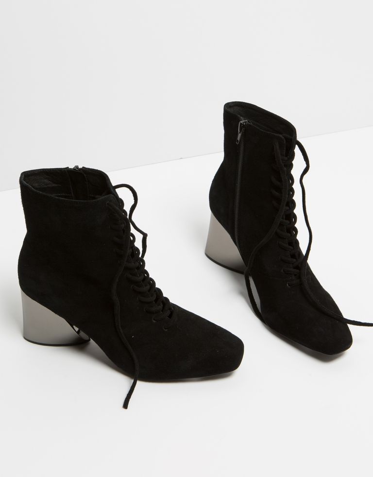 הסוד הוא בעקב: מגפוני זמש עם שרוכים ועקב מטאלי בחיתוך נדיר.