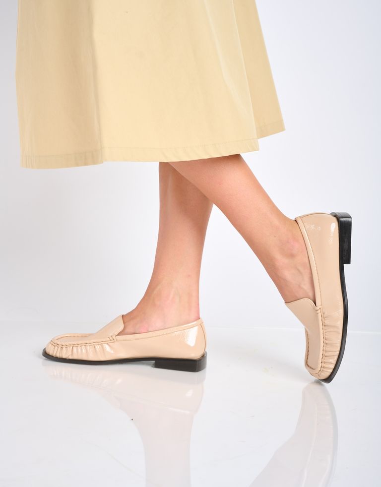נעלי לואפרס לנשים, עיצוב קלאסי עם חרטום מרובע מקדימה וטקסטורה מבריקה. כן, ג'פרי קמפבל שוב הבריק.