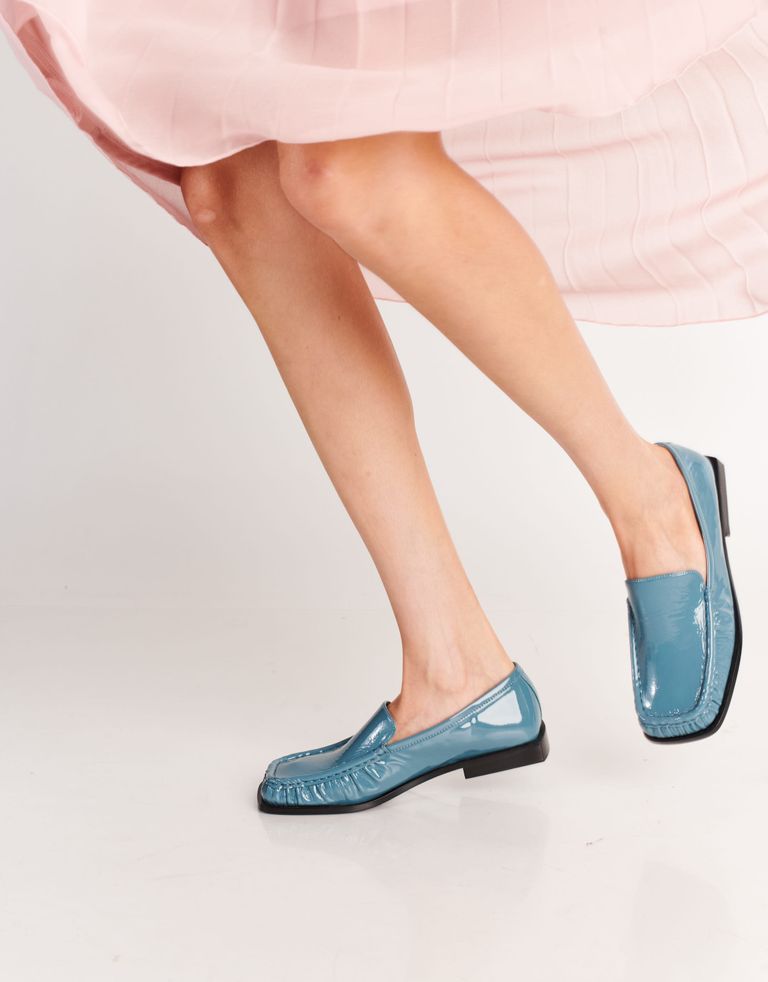 נעלי לואפרס לנשים, עיצוב קלאסי עם חרטום מרובע מקדימה וטקסטורה מבריקה. כן, ג'פרי קמפבל שוב הבריק.