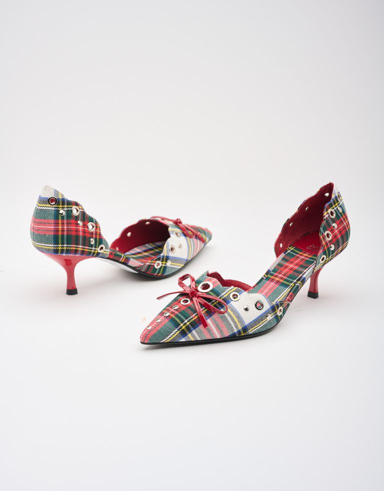 נעלי עקב בגזרה קלאסית ומחמיאה עם דוגמת משבצות שנותנת קריצה של אולד-סקול וניחוח וינטג׳ לנעל.