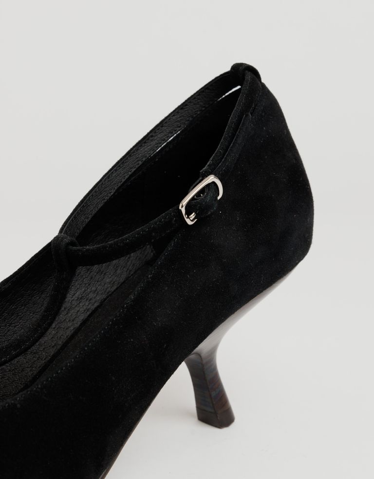 נעלי שפיץ מזמש, עם רצועת T וסגירת אבזם סביב הקרסול. נעליים סופר מחמיאות לרגל והכי אלגנטיות שיש.