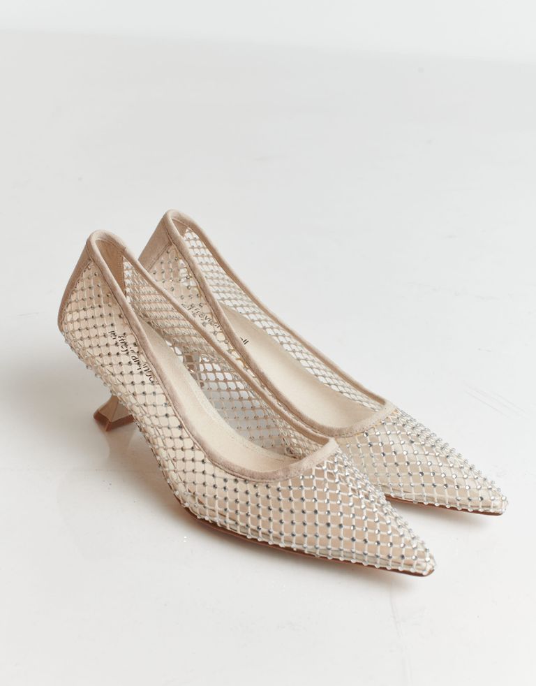 סינדרלה, זאת את? כי מצאנו את הנעליים שלך והן וואו. בגלל שלא את הכל רואים בתמונות, נגלה את הסוד – הנעליים עשויות פלסטיק שקוף ועליו רשת דקה עם עיטורי אבנים ושוליים מזמש. אבל אם שואלים, מדובר בנעלי זכוכית.