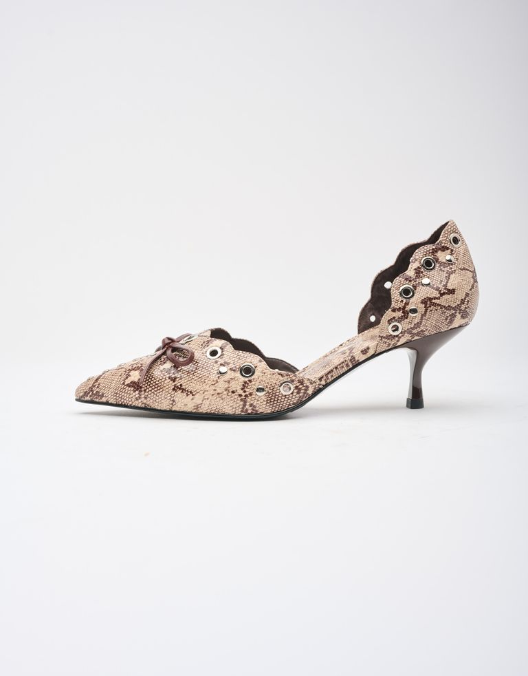 נעלי סירה בגזרה קלאסית ומחמיאה עשויות עור בדוגמת נחש עם דיטיילז של קשירה וניטים.