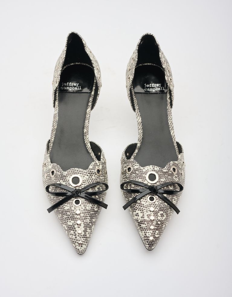 נעלי סירה בגזרה קלאסית ומחמיאה עשויות עור בדוגמת נחש עם דיטיילז של קשירה וניטים.