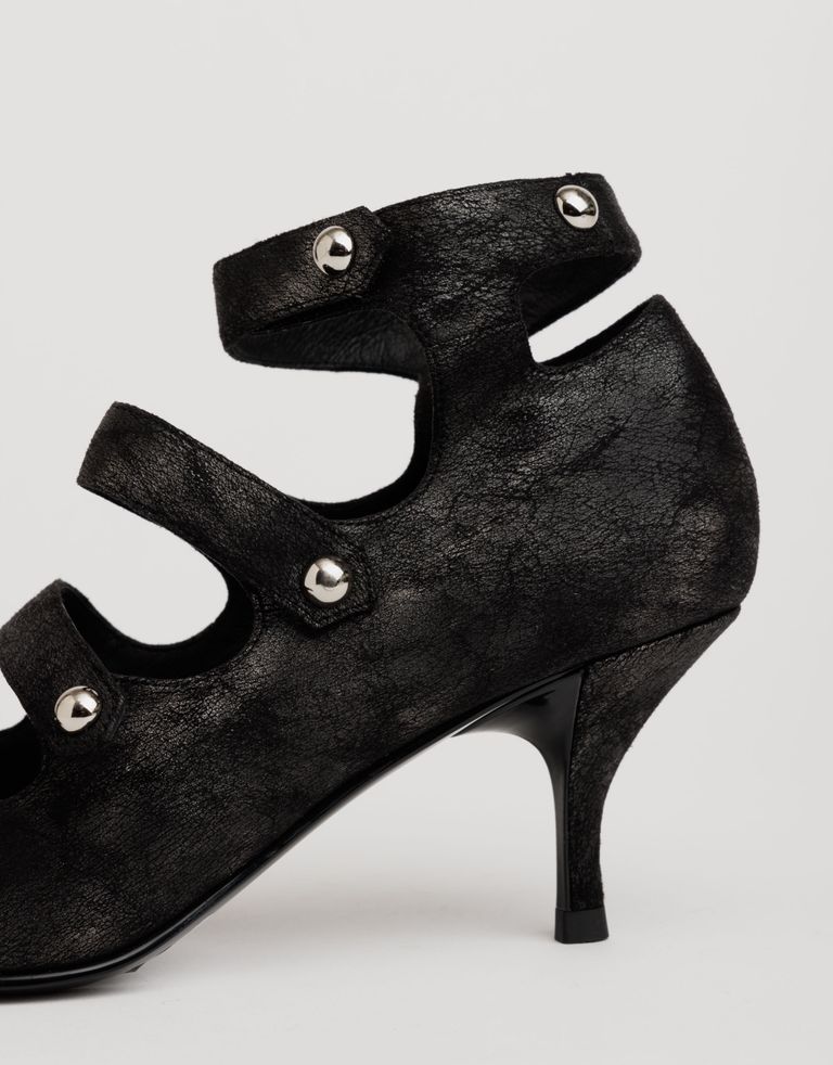 נעלי שפיץ עשויות דמוי עור עם שלל רצועות מטריפות בשילוב ניטים. שתי הרצועות העליונות נפתחות באמצעות סקוץ' חבוי, בעוד שהשתיים שקרובות יותר לאצבעות נשארות סגורות אך עם גומי קטן להתאמה אישית מקסימלית.