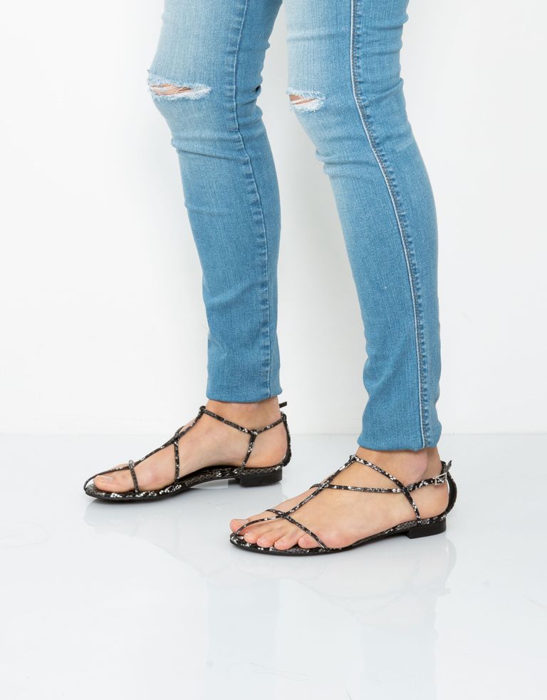 בסנדלים DECEIPT-LO פחות זה יותר: מעוצבים מרצועות דקות דקות עם פרינט מנוחש.