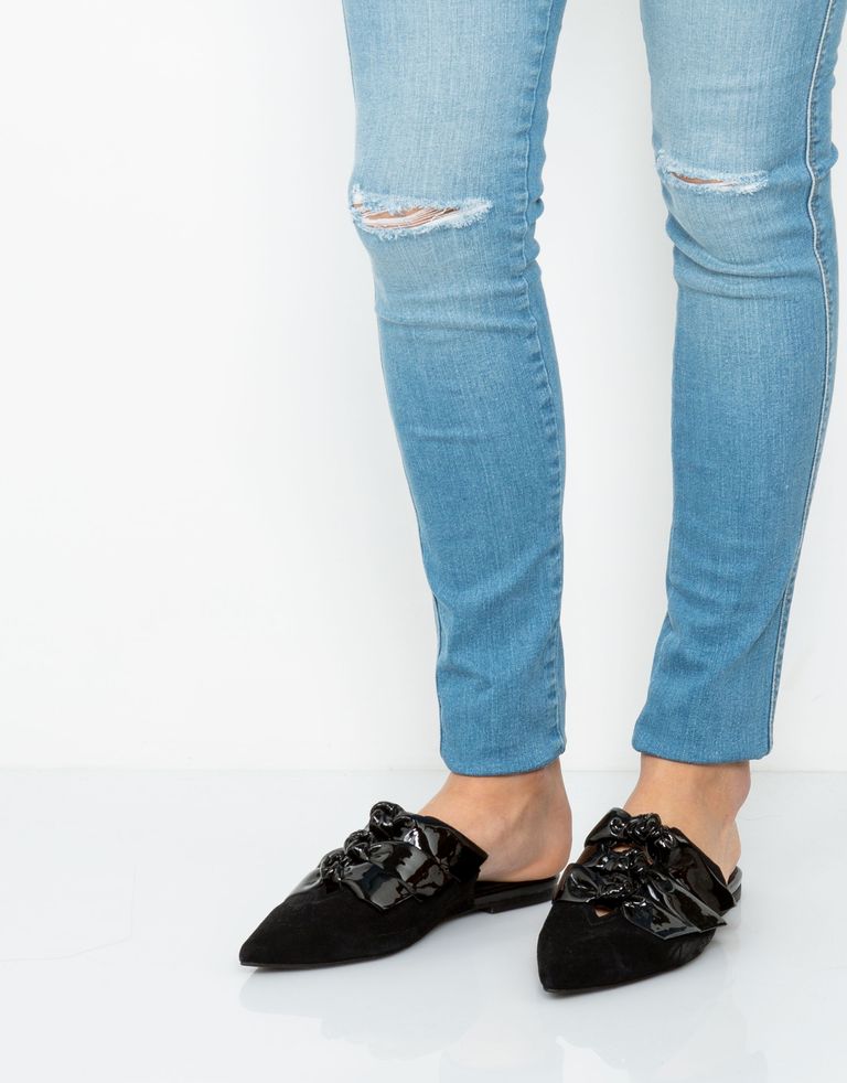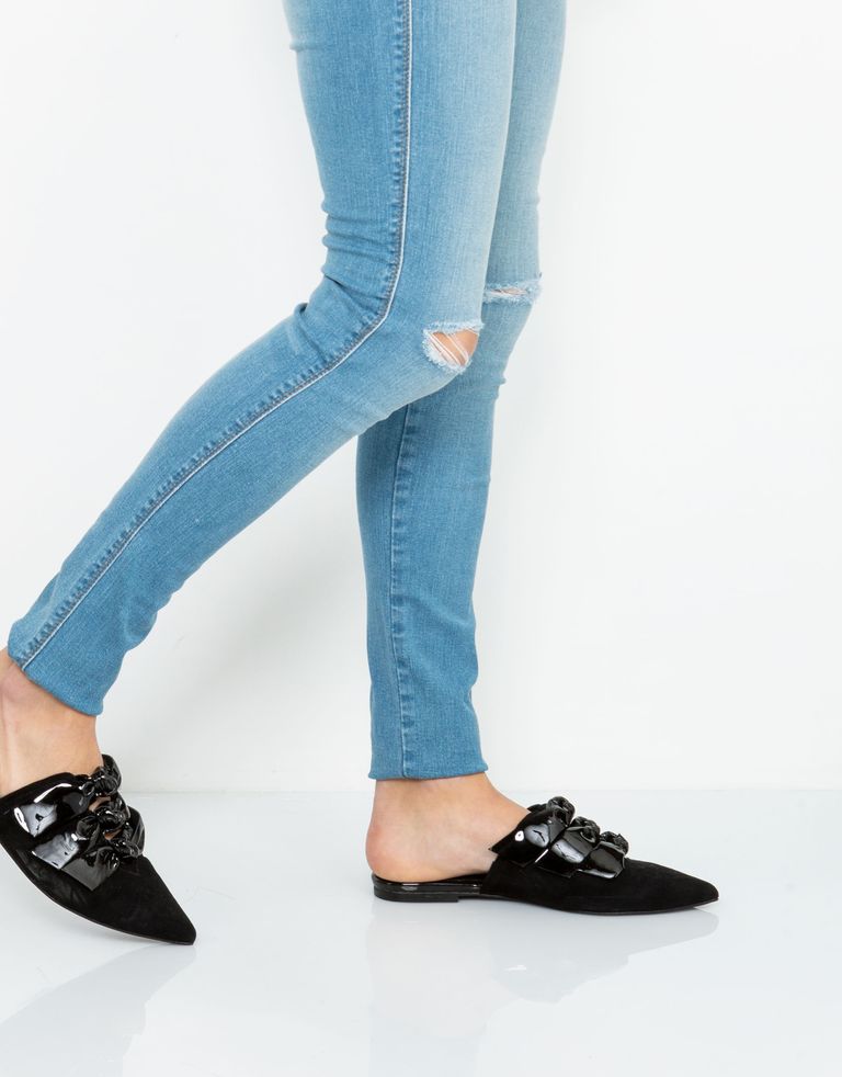 קבלו חידוד: כפכפים שטוחים עם קצה חד, מאובזרים בשלושה קשרים בולטים.
