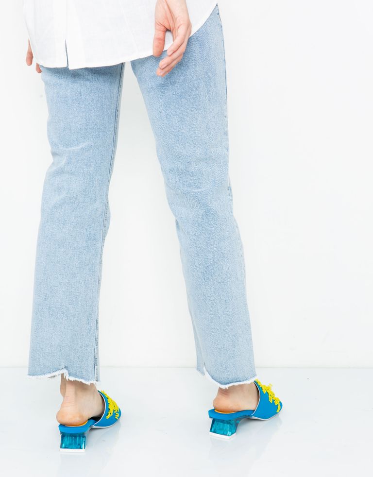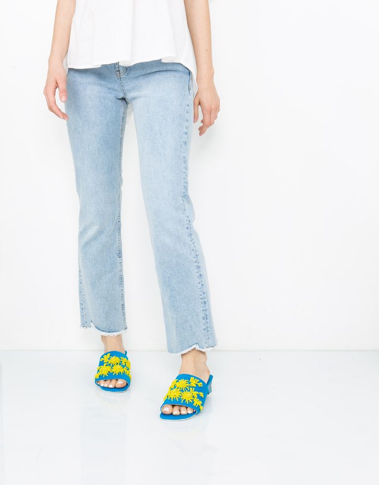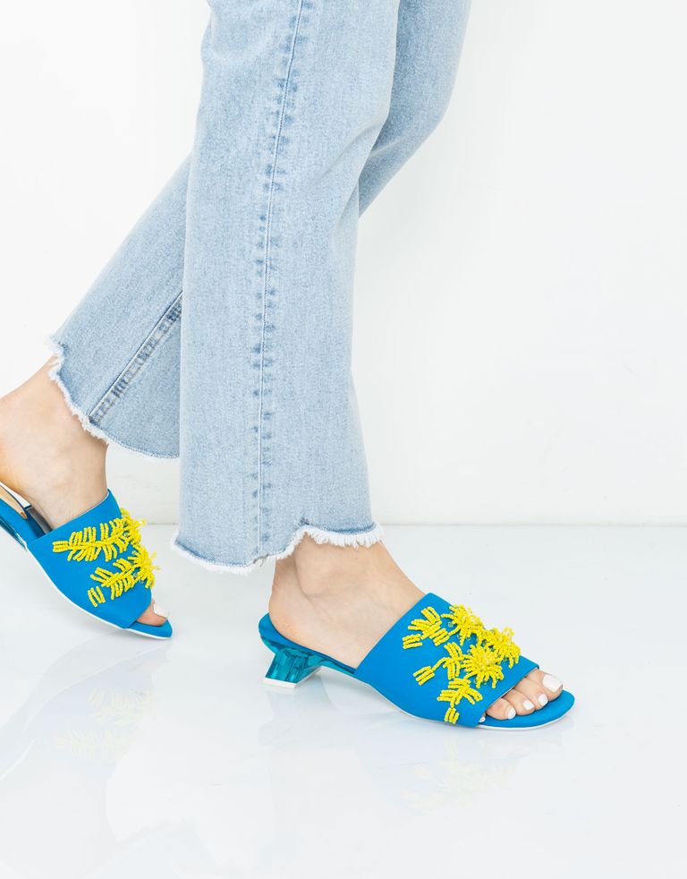 כפכפים פתוחים מסאטן, מקושטים בעיטורי חרוזים משמחים.
