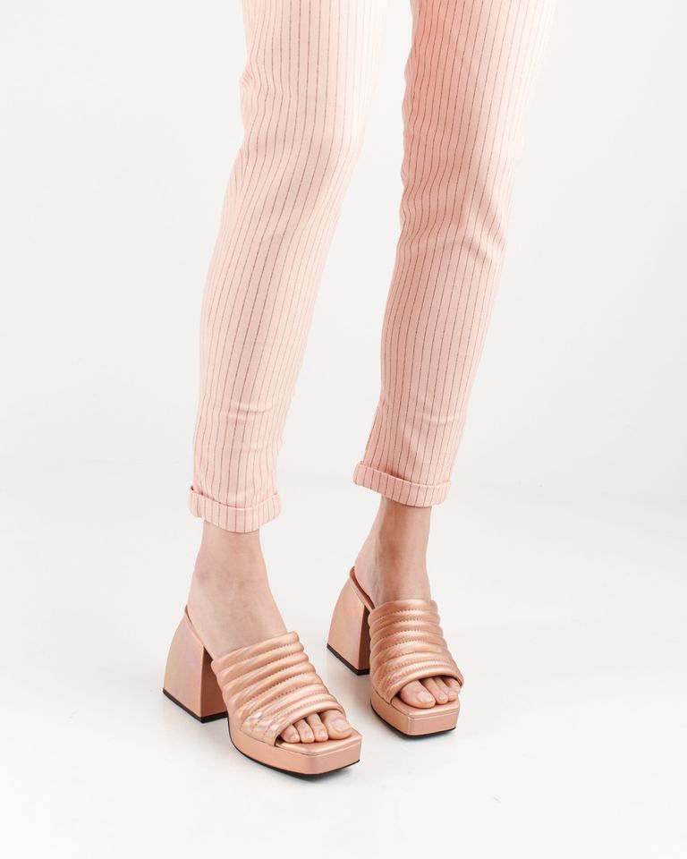 כפכפים במראה צ'אנקי וסופר סבנטיזי, עם רצועה אחת גדולה במראה Puffy. ומה עם העקב? גם הוא קיבל הגדלת סופר-סייז, אלא מה.