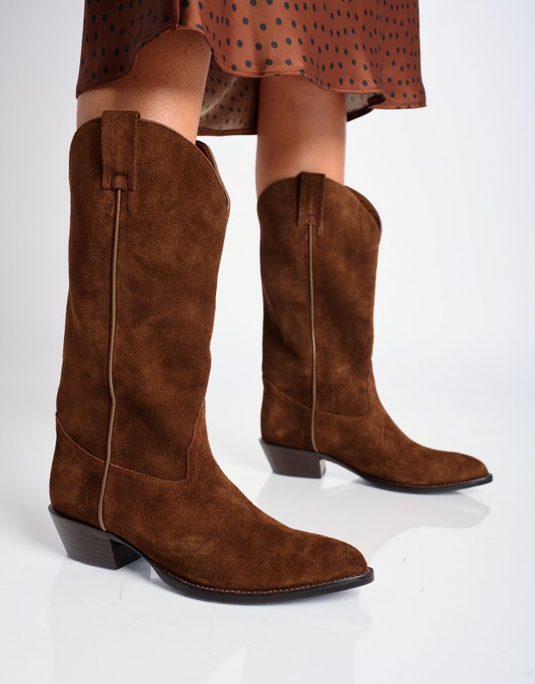 מגפונים עם עקב נמוך עשויים זמש עם תיפורים חיצוניים ורוכסן צד. קלאסיקה.