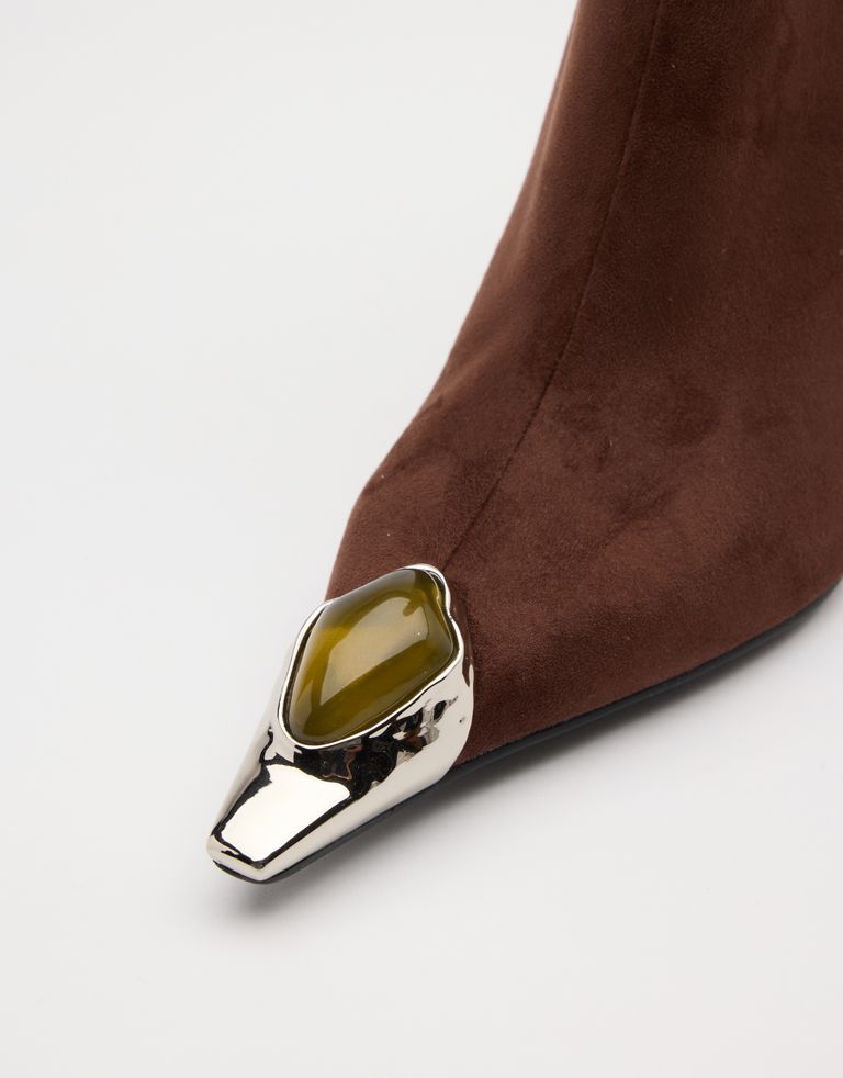 מגפונים מעור עם חרטום שפיץ ועקב קיטן שמוסיף קריצה. בנוסף, תיפורים בולטים וגפה בחיתוך מחמיא היוצרים מראה חד ומדויק. מושלם.