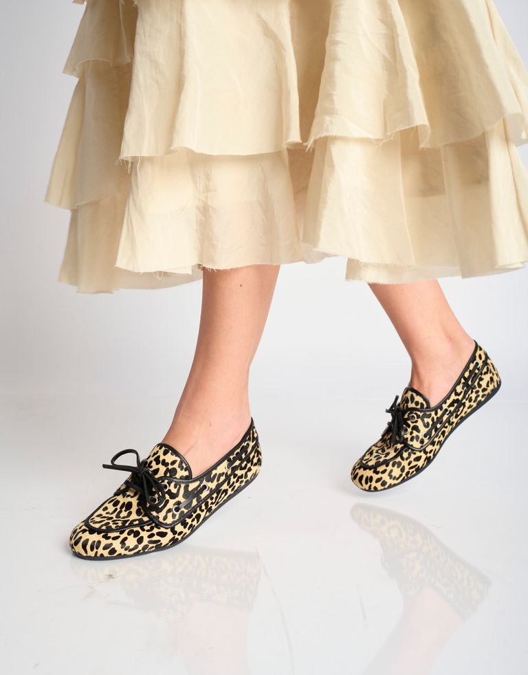 נעלי מוקסין שטוחות, משילוב של בד ועור עם פרינט פרחוני משגע, מאסט ליום יום.