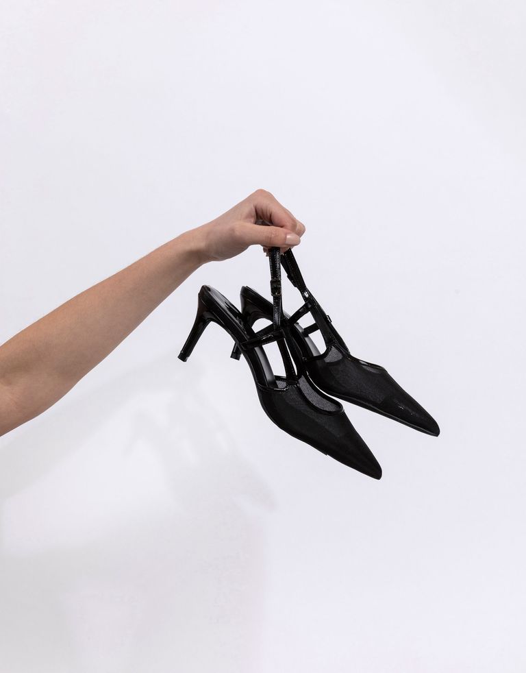 נעלי נשים שפיציות, עשויות מבד רשת שקפקף, חצוף אבל עדיין אלגנטי.