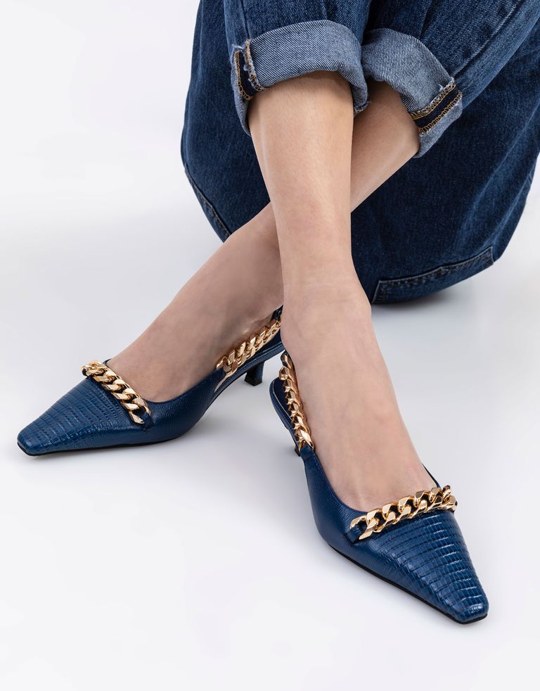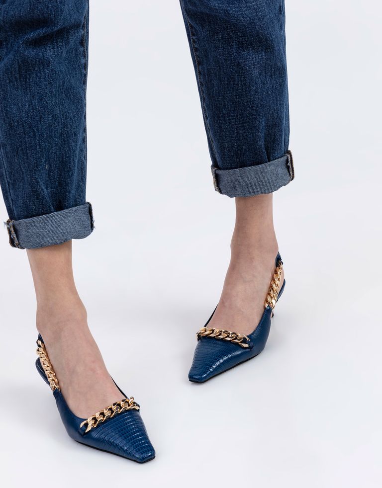 נעלי סירה עם שרשרת RYKA, חיבה לגורמטים – הדור הבא. הנעליים מחודדות, מאובזרות בעקב דק ובדיטייל שהוא כמו תכשיט לכף הרגל.