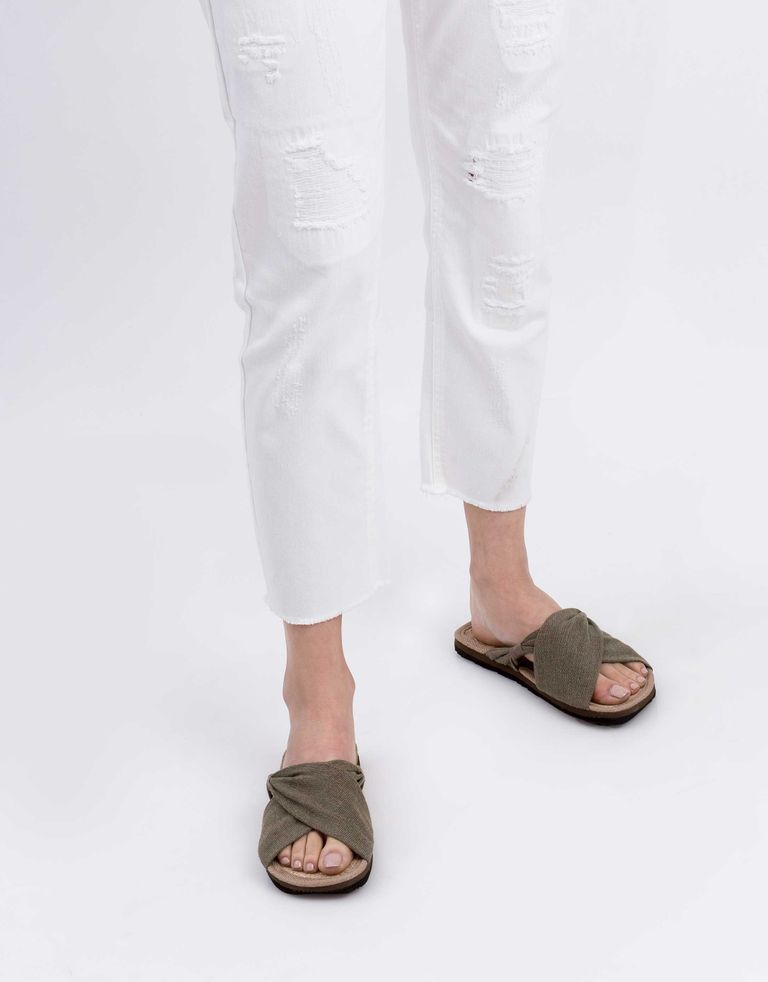 כפכפים טבעוניים מבד אורגני ונושם, מאובזרים בסוליות העשויות מצמיגים ממוחזרים.