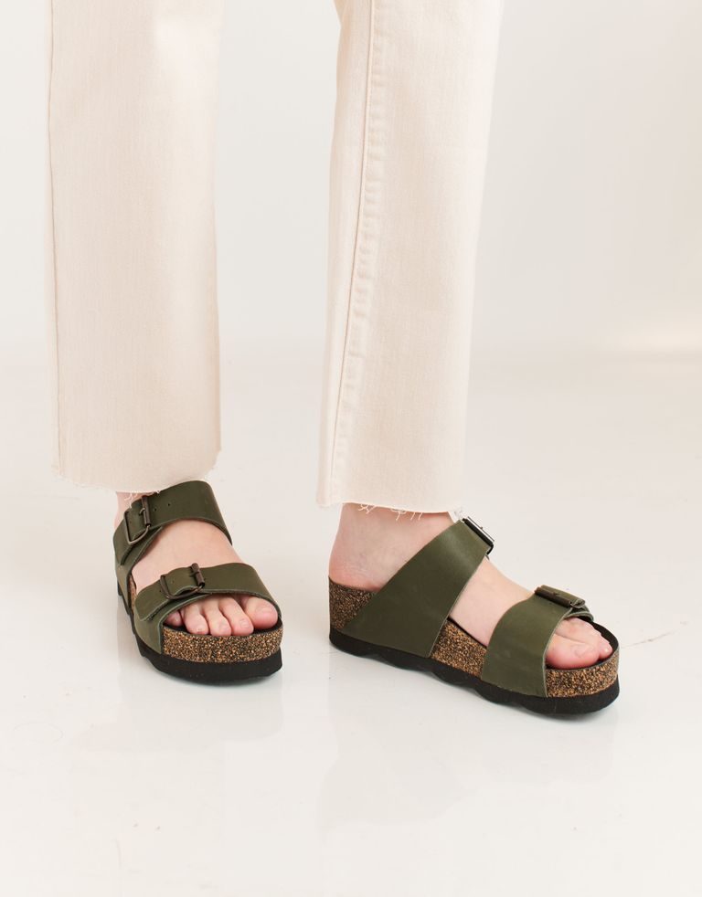 כפכפי פלטפורמה עם שתי רצועות מתכווננות – ככה פשוט, ככה גאוני. הכפכפים עשויים מעור בגימור חלק.