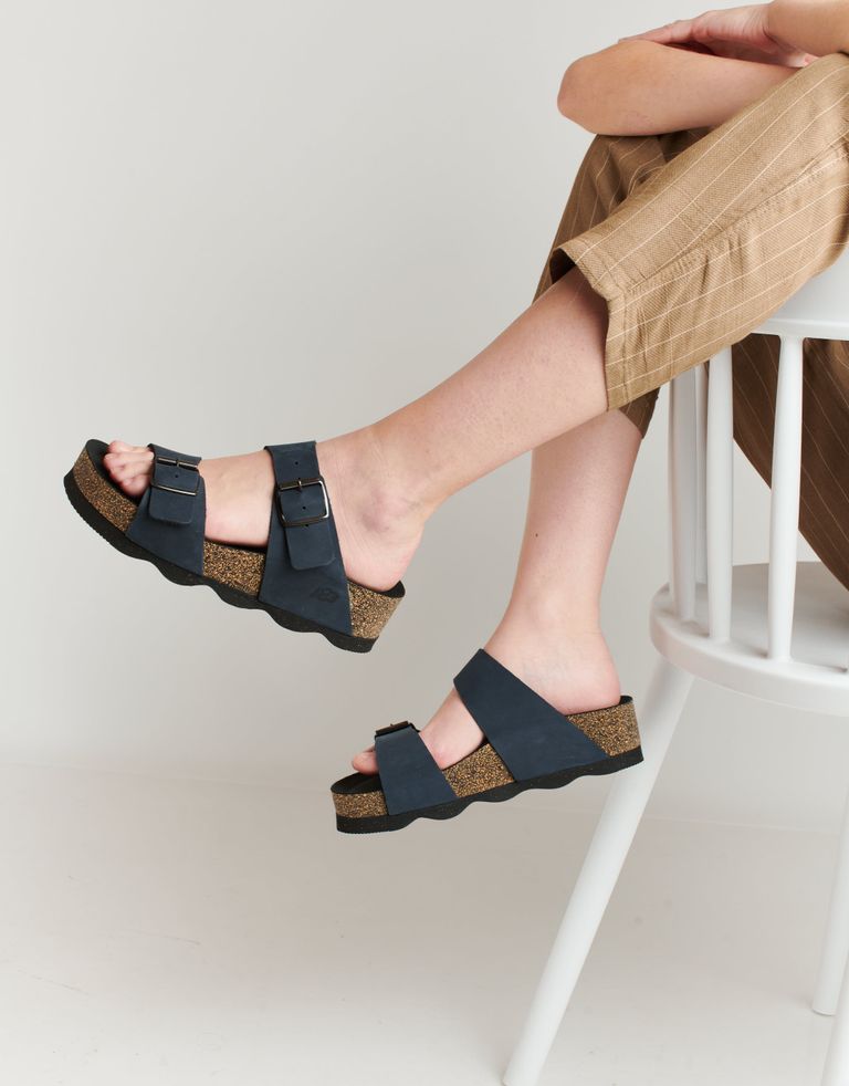 כפכפי פלטפורמה עם שתי רצועות מתכווננות – ככה פשוט, ככה גאוני. הכפכפים עשויים מעור בגימור חלק.