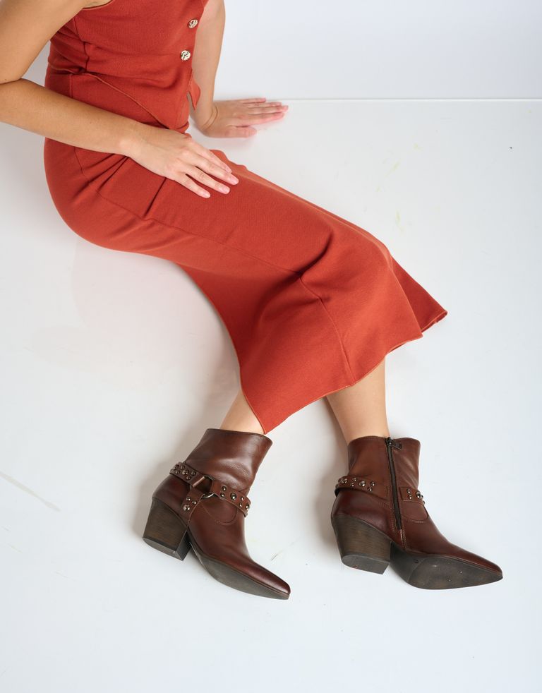 מגפונים בסגנון בוקרות לנשים שחיות בסרט מערבון. סופר שפיציים ומצוידים בניטים וברוכסן צד כדי שיהיה הכי נוח לנעילה.