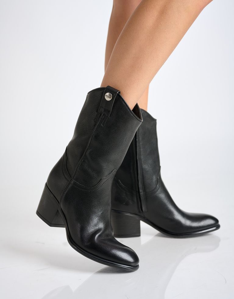 מגפיים עם עקבים, עשויים עור איכותי עם דיטייל של כפתור מלמעלה. מגפי בוקרים קלאסיים בדיוק במידה הנדרשת.