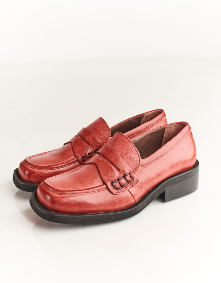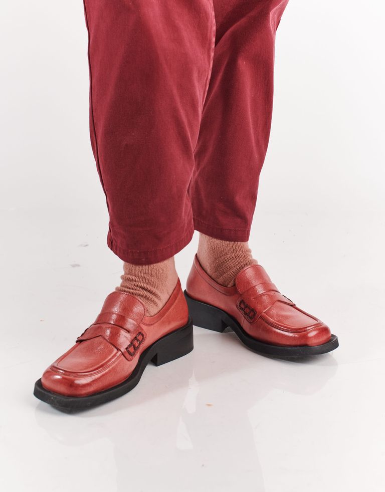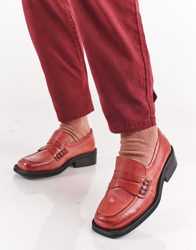 מוקסינים מעור עם חרטום מרובע, עקב קטן ותוספת גומי המוחבאת בלשונית הנעל, להתאמה אישית.