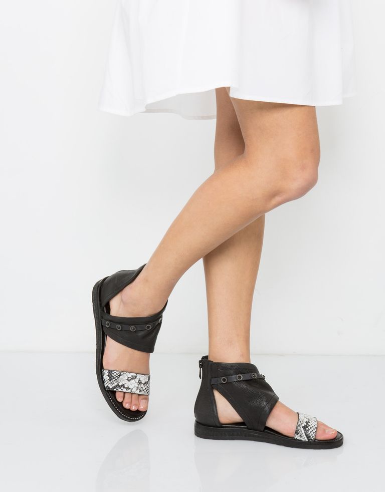 אלגנט של נונשלנט: סנדלים שטוחים מעור, מצוידים ברצועת אבנים עדינה וברוכסן אחורי לנעילה נוחה.