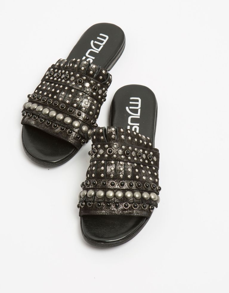 כל הניטים לכאן: כפכפי עור מתוכשטים עם סולייה שטוחה ונוחה.