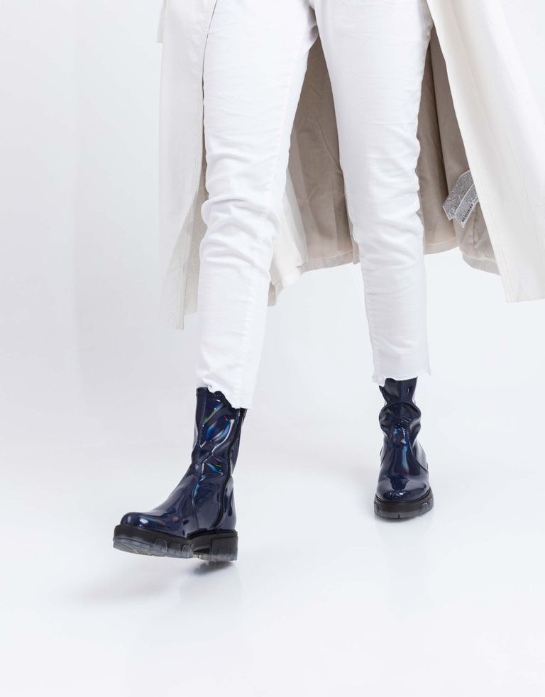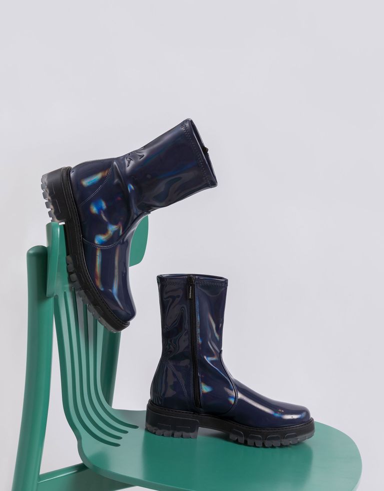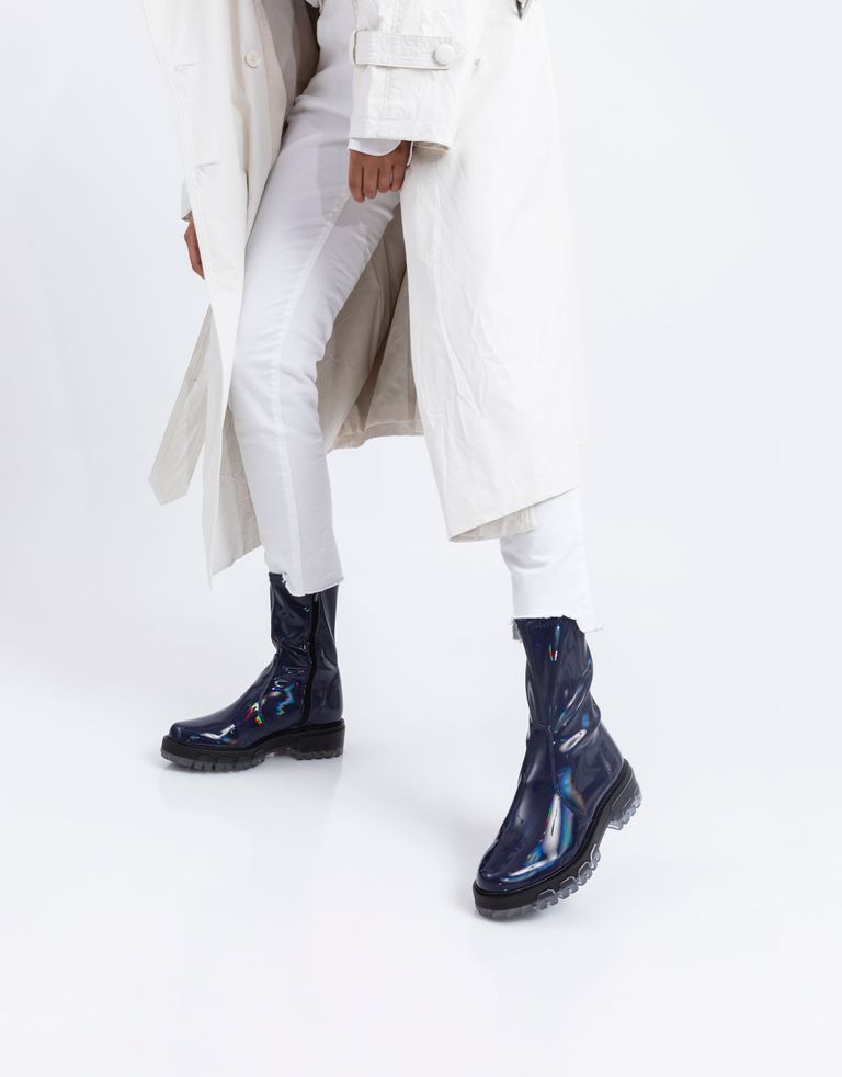 מגפונים INA PATENT דמויי עור בגימור הולוגרמי, מצוידים בסוליית גומי שקפקפה ומגושמת – ממש ניינטיז, רק בטבעוני.