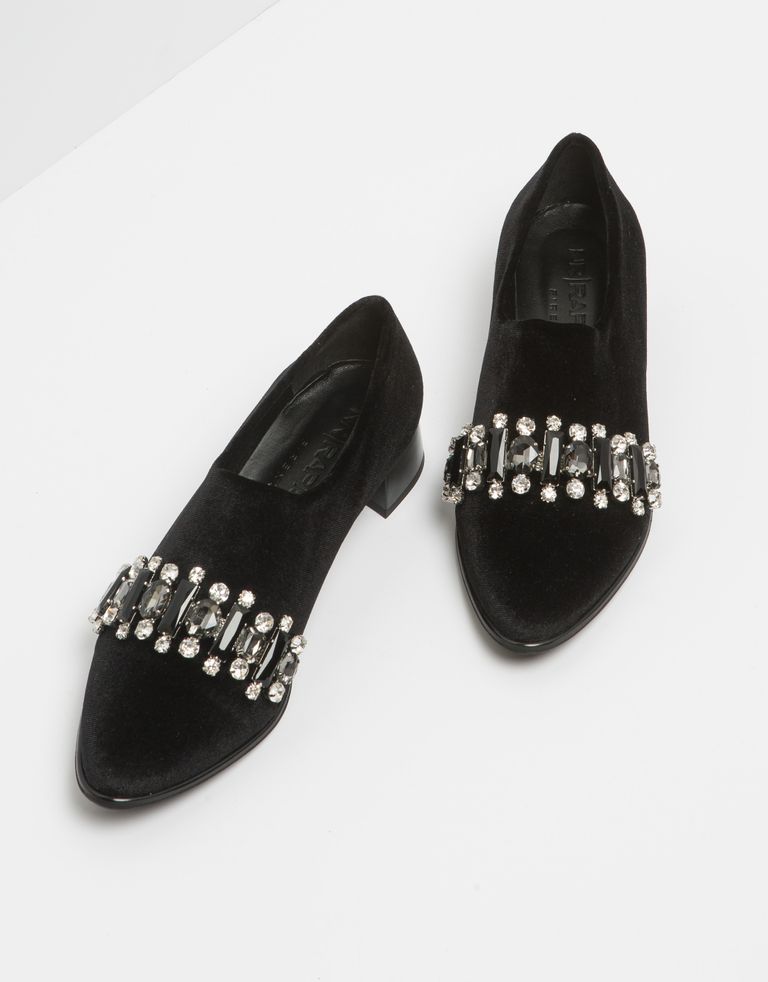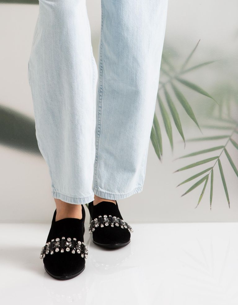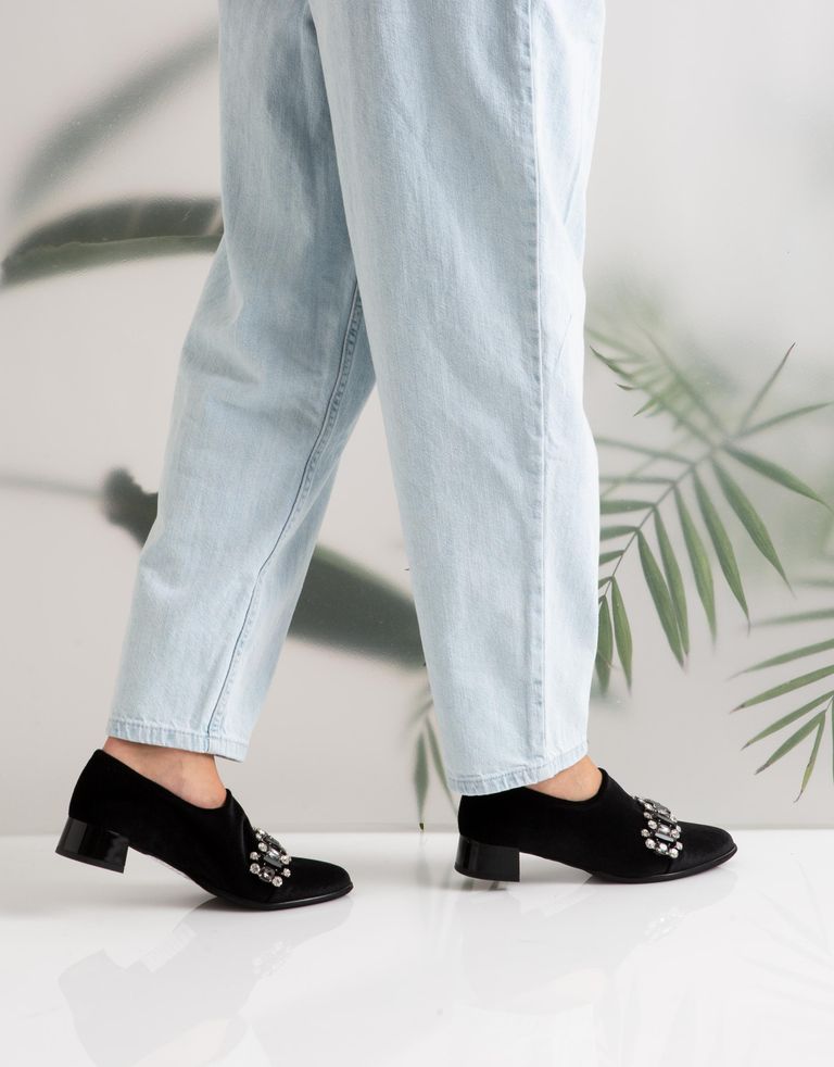 נעלי קטיפה טבעוניות עם תכשיט אבנים גדול ומנצנץ.