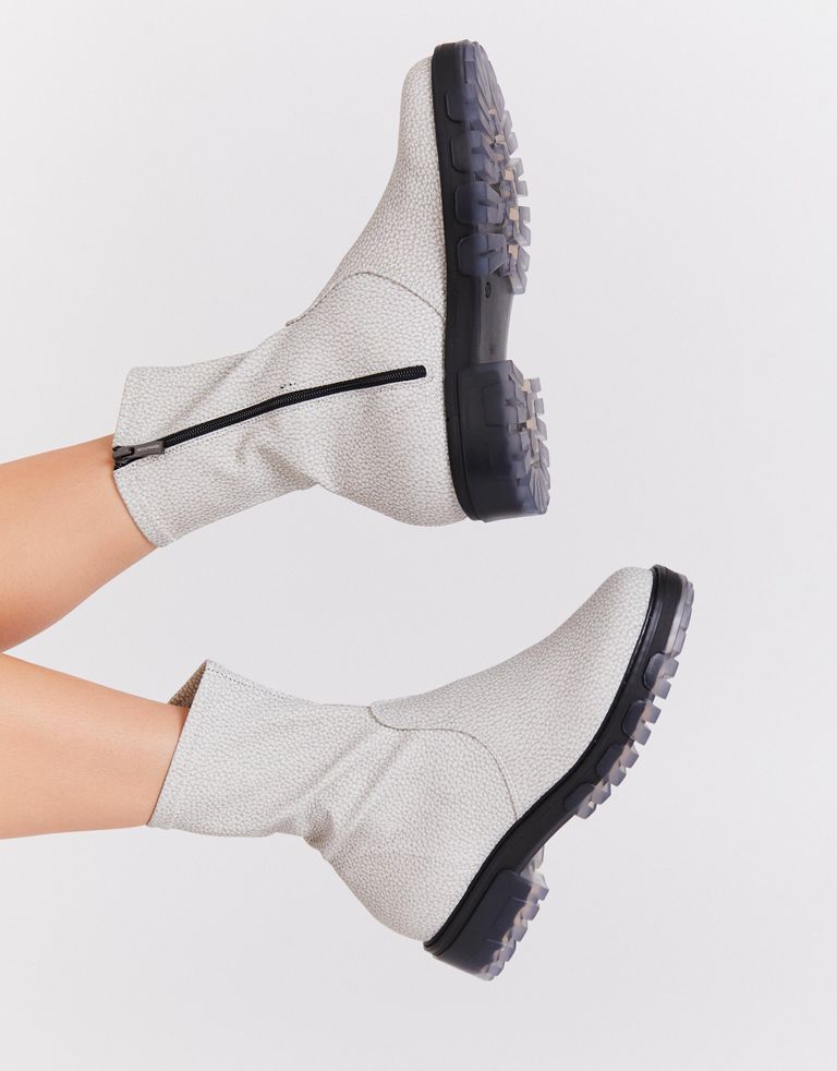 מגפונים דמויי עור בהשראת הניינטיז. אי אפשר באמת לטעות פה, אבל הקסם האמיתי מתרחש בסולייה – גומי שקפקף בעיצוב גס ונהדר.