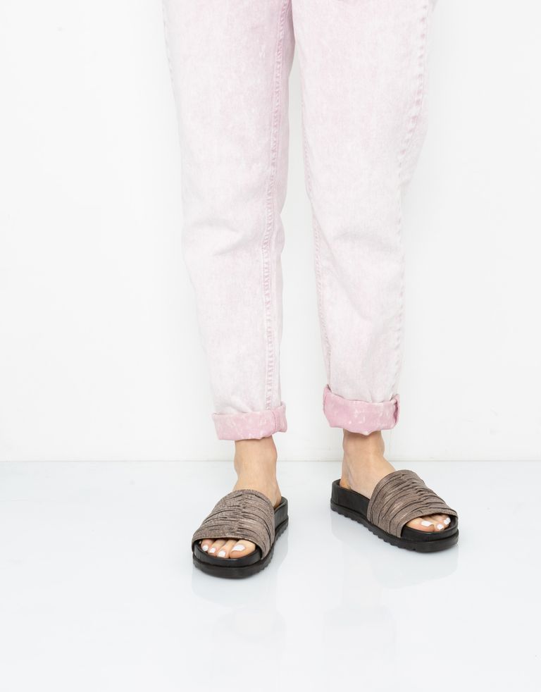 כפכפים פתוחים שעשויים מרצועות עור דקיקות וצפופות בתוספת סוליית פלטפורמה נמוכה.