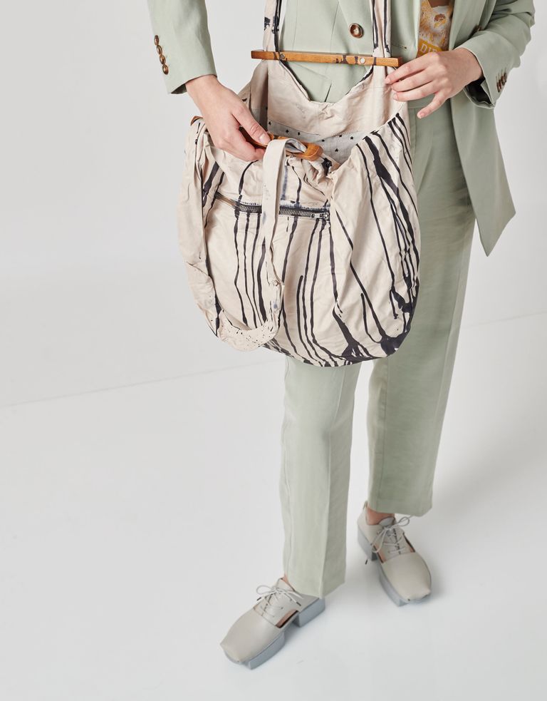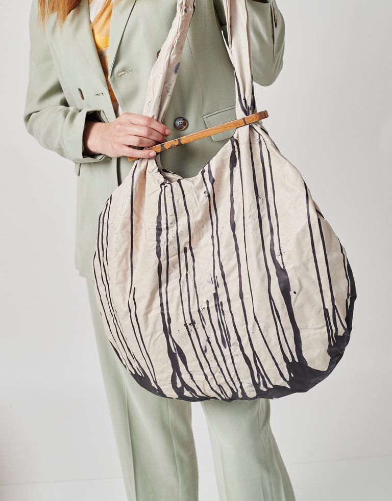 תיק GRIONA מעור, נצבע בשיטה ידנית, ככה שתהיי בטוחה שבדיוק כזה אין לאף אחת אחרת. לתיק יש תא ענק וכיס פנימי עם רוכסן. והסגירה שלו? או, הגענו לחלק המעניין. שני מקלות עץ הנסגרים באמצעות מגנט. גאוני!