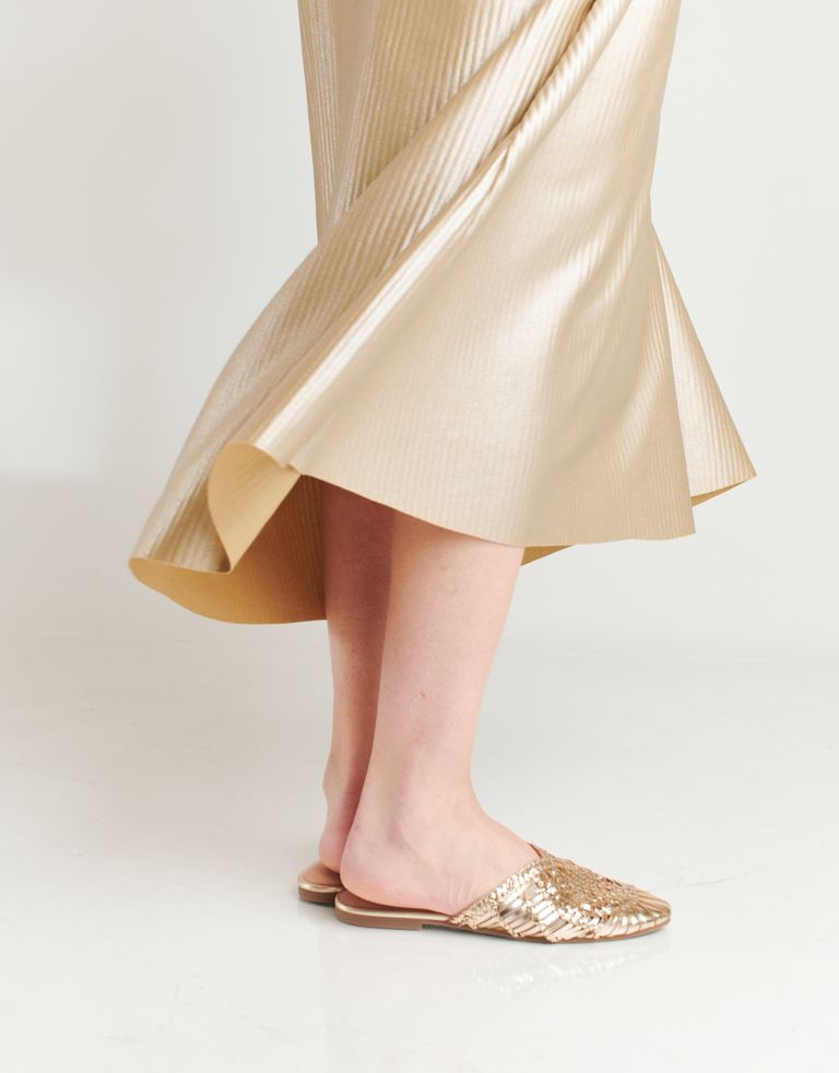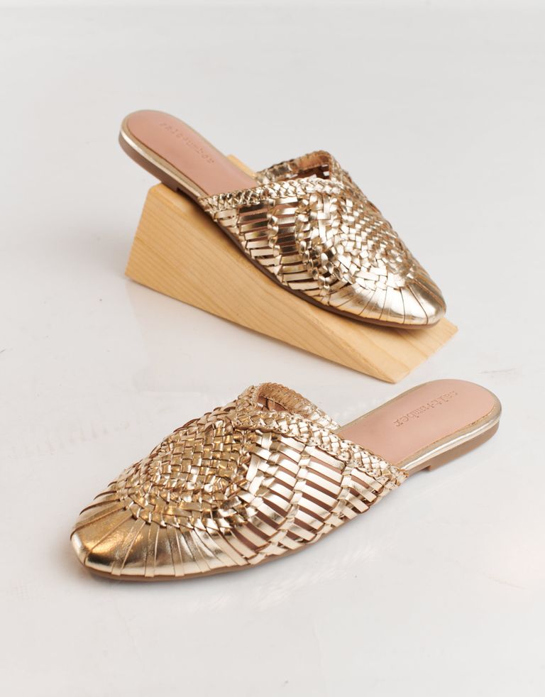 כפכפים שטוחים בסגנון מיולס, עשויים עור בעבודת יד ובמראה קלוע ואוריינטלי במידה.