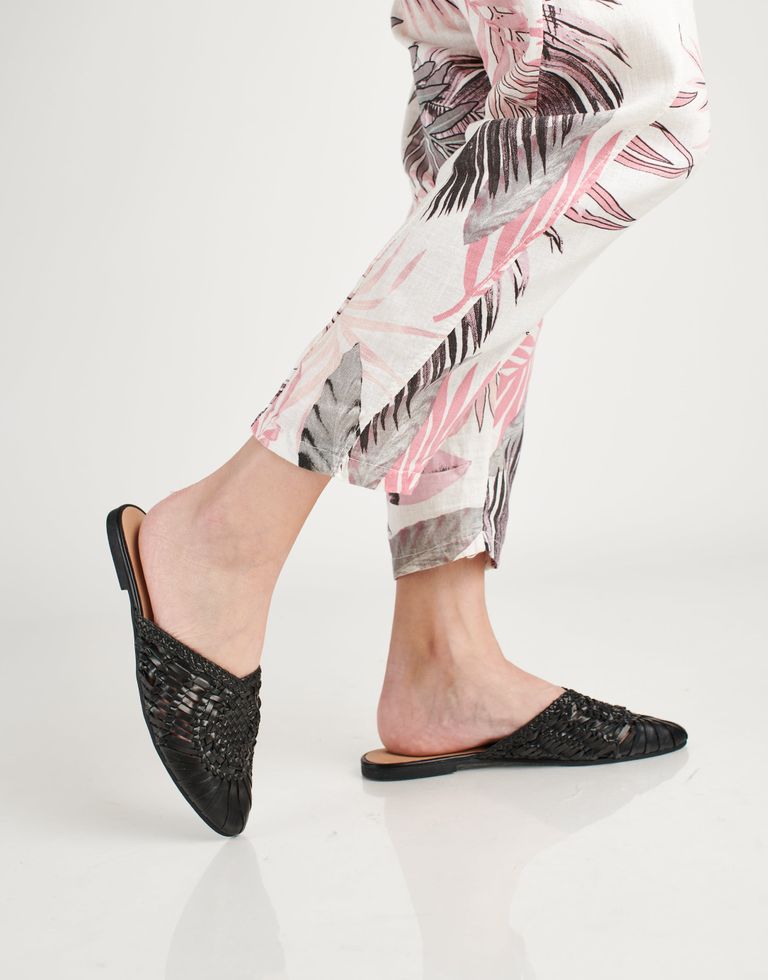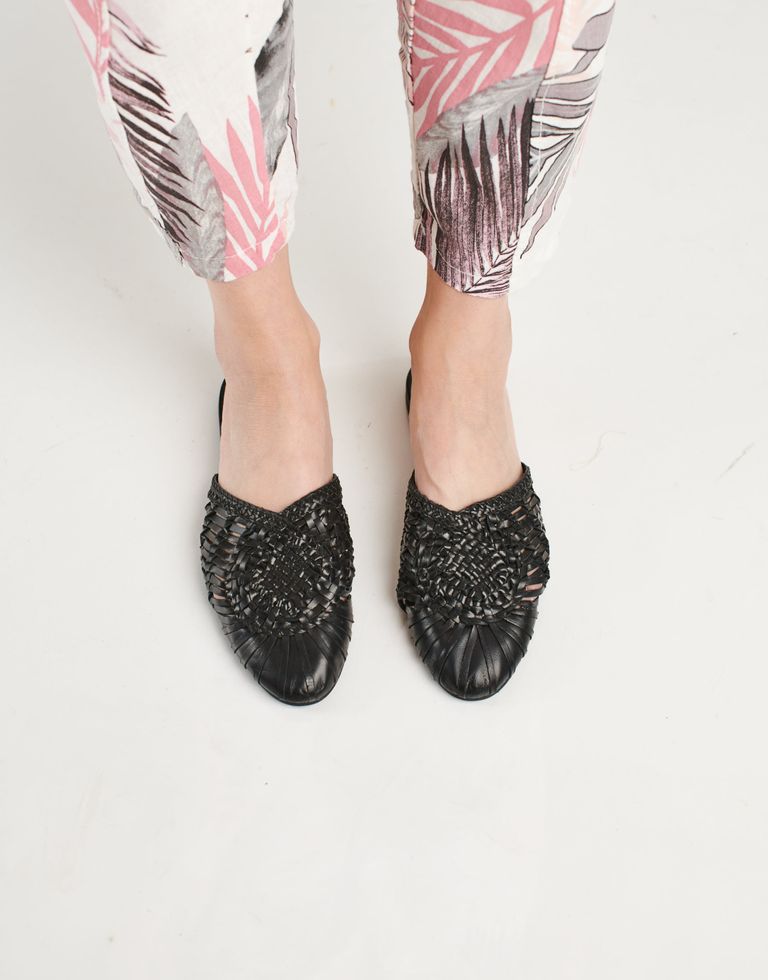 כפכפים שטוחים בסגנון מיולס, עשויים עור בעבודת יד ובמראה קלוע ואוריינטלי במידה.