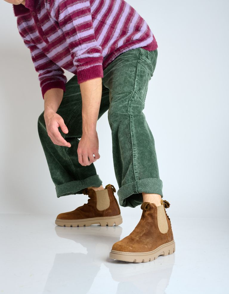מגפי עור בסגנון צ'לסי עם סוליית טרקטור צ'אנקית ובטנה מחממת. השילוב המושלם של עמידות ונוחות בעיצוב קלאסי שמתאים לכל מזג אוויר חורפי.